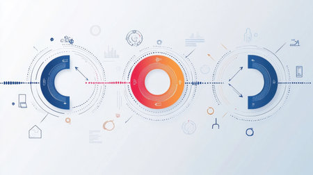 Circular diagram visualizing segmented data and presenting statistical information, representing concepts of marketing, finance, and various business analyzes
