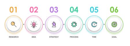 Infographics design template and icons with 6 options or 6 steps. use as workflow process diagram,business data presentation, timeline layout, milestone, banner, brochure, flow chart