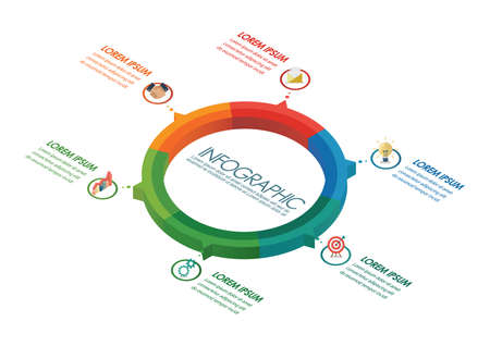 Vector set of colorful loop, circle, step by step infographic. Template for diagram, graph, presentation and chart. Abstract business concept with options, parts, 6 steps or processes.