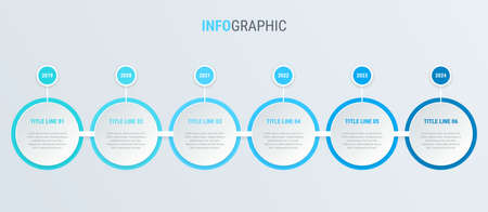Blue diagram, infographic template. Timeline with 6 steps. Circle workflow process for business. Vector design.