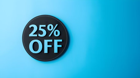 Black '25% OFF' Promotional Sign on a Light Blue Background with Copy Space
