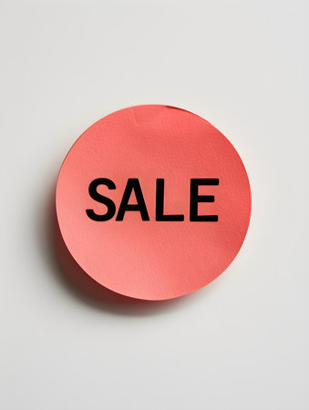Black 'SALE' Text on a Light Red Round Paper Note. White Background