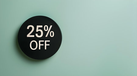Black '25% OFF' Promotional Sign on a Light Green Background with Copy Space
