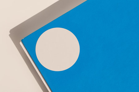 Abstract blue and white geometric design on corner of book or magazine.