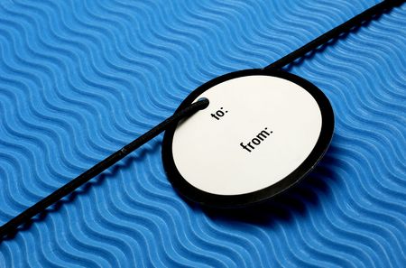 Photo of a Gift Tag on Blue Textured Wrapping Paper