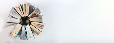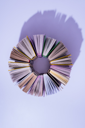 Circle made of Books, white background, science and education. Reading and writing concept. Useful.