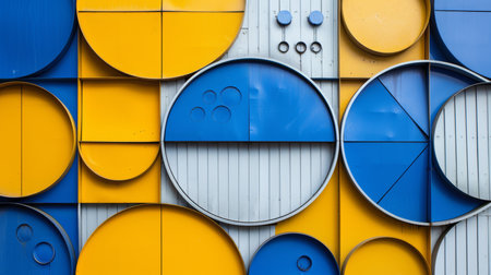 Blue, yellow, and white geometric shapes abstract background with triangles and circles