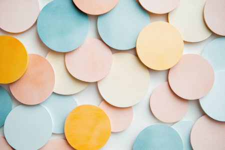 Colorful round paper circles in pastel shades creating a soft background for design projects, ideal for seasonal themes and creative crafts