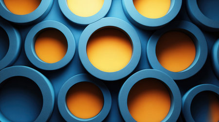 A visually captivating abstract design featuring geometric circular patterns in blue, orange, and teal hues. The overlapping shapes create a dynamic and modern artwork ideal for contemporary decor.. AI Generation