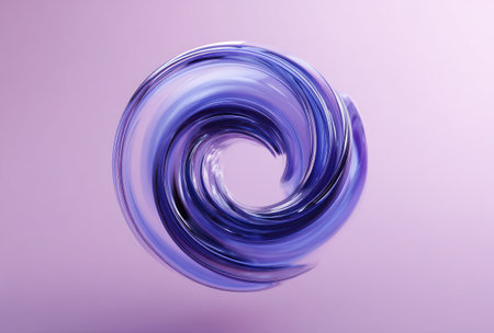 A swirling abstract design features shades of purple with glossy textures. This 3D rendered artwork appears on a soft, gradient background. The composition, centrally focused, suggests modern design. Potential uses could include website elements or graphic design projects.