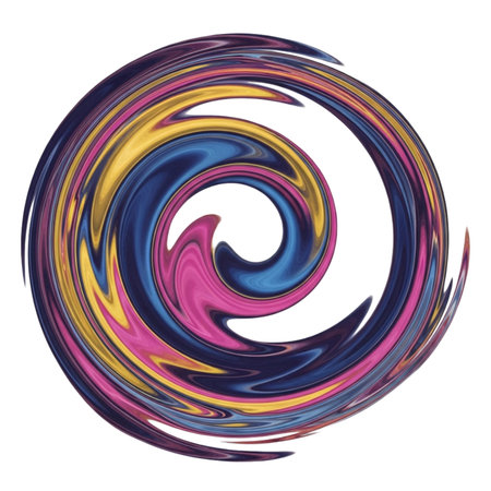 Dynamic abstract artwork featuring a vibrant swirl of pink, blue, and yellow hues, creating a sense of movement and energy