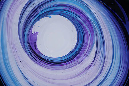 An abstract image features a swirling spiral composed of blue and purple tones, set against a dark background. The circular composition creates a sense of movement and depth. This visual could be utilized in various commercial or editorial projects needing a modern, dynamic element.