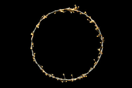 Yellow decorative led lights wreath garland isolated over black