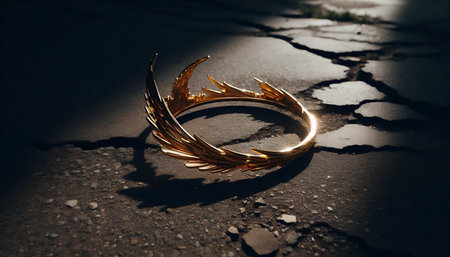 A broken halo resting on cracked concrete, Ai generated image