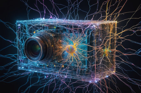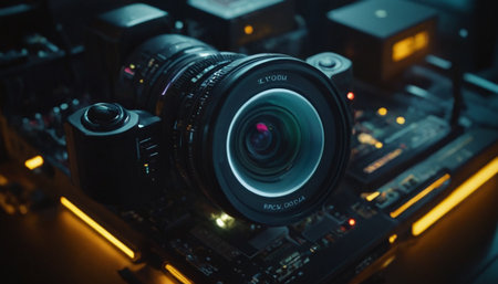 Futuristic Digital Camera on Circuit Board. Generative AI.