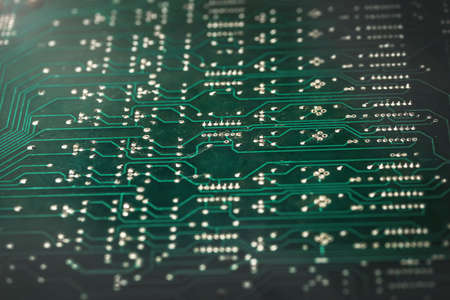 Electronic circuit board abstract background. computer hardware. motherboard close up. modern technologies. micro elements of computer with connections and traces. Intelligent technology