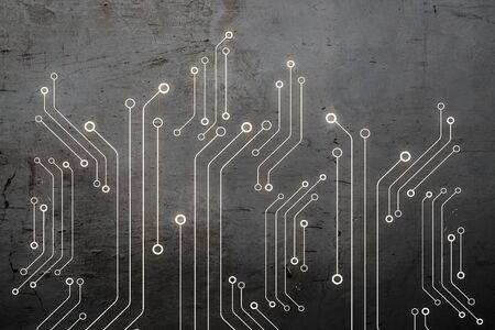 Abstract circuit printed backlit bokeh background that symbolizes modern technology.