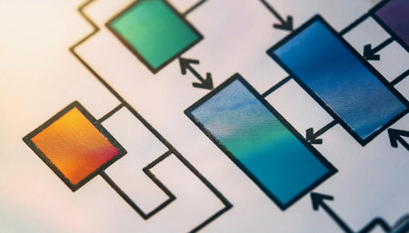 Close up image of a flowchart showing various steps of a process, representing workflow, stages, and methodology.