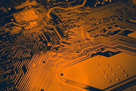 Electronic circuit board abstract background. computer hardware. motherboard close up. modern technologies. micro elements of computer with connections and traces. Intelligent technology