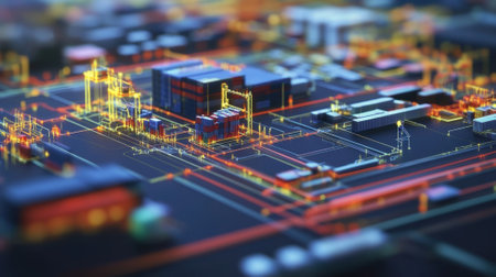 Explore the intricate details of a vibrant electronic circuit board with glowing lines and dots, symbolizing modern technology and innovation.