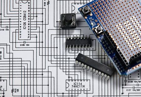 closeup of electronic component, unit, part, radio equipment and digital microchip - DIY kit for learning, training and development of electric circuits