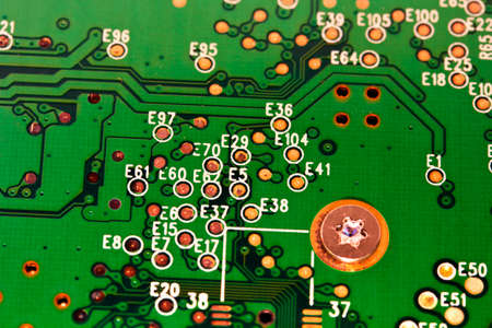 Macro photo of electronic circuit board close up.