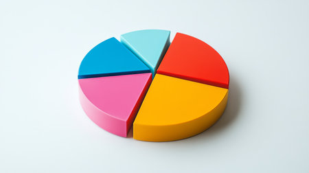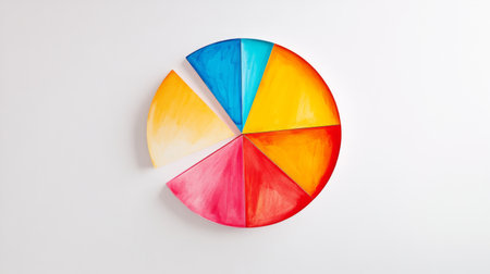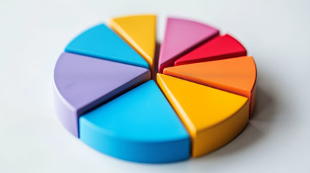 A vibrant pie chart showcasing colorful segments against a minimalistic white background, ideal for illustrating data analysis and infographics in various professional settings.
