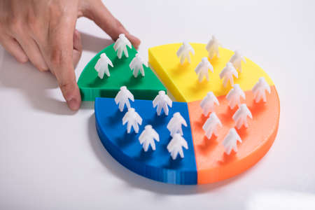 Businessperson's Hand Placing Last Green Piece With Human Figures Into Pie Chart