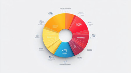 A vibrant pie chart infographic showcasing diverse data segments, ideal for business presentations, data analysis projects, and engagement visualizations.