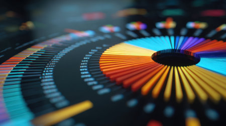 Explore a stunning digital visualization that features a colorful circular graph, showcasing data analysis through vibrant colors and innovative design, perfect for technology themes.