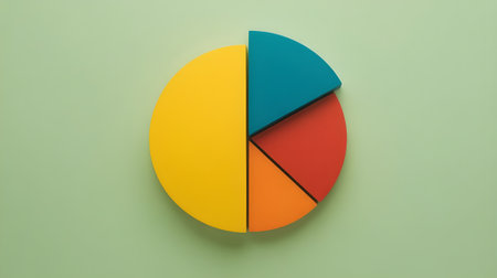 A colorful pie chart representation on a minimalist backdrop, ideal for data analysis, presentations, and business visuals, showcasing insights and metrics.
