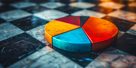 Colorful pie chart with vibrant segments displayed on a table, ideal for showcasing data analysis and business presentations in a creative and engaging manner.