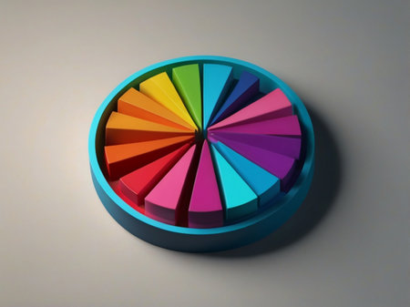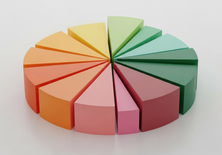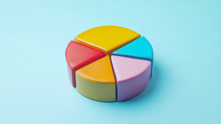 A vibrant pie chart on a light surface, perfect for business presentations, data analysis, or creative projects, showcasing colorful segments for visual impact.