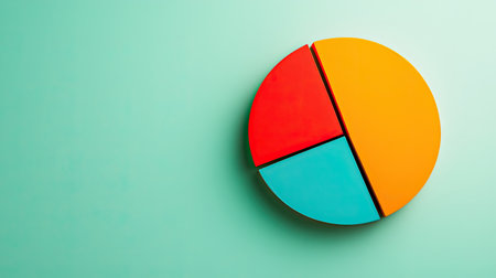 A colorful pie chart divided into three segments, resting on a mint green background, symbolizing data representation and analysis.