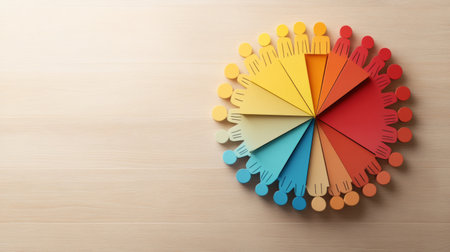 Colorful paper figures arranged in a circular formation symbolize diversity and unity. This creative design represents teamwork, collaboration, and community spirit.
