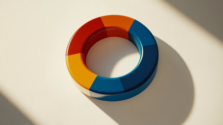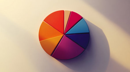 A colorful pie chart casts striking shadows on a surface, showcasing modern design and vibrant colors. Ideal for business or creative visualizations.