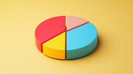 A vibrant pie chart composed of four sections in blue, red, yellow, and orange, set against a soft yellow background, ideal for marketing and educational materials.