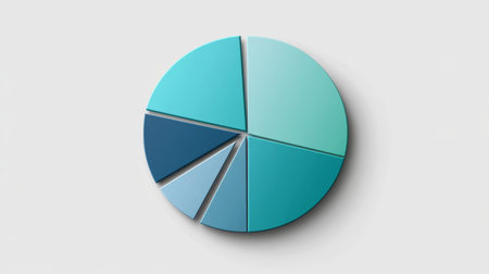 An elegant and modern pie chart showcasing a spectrum of blue and green shades. Perfect for business presentations or data analysis, this graphic represents clear statistical insights.