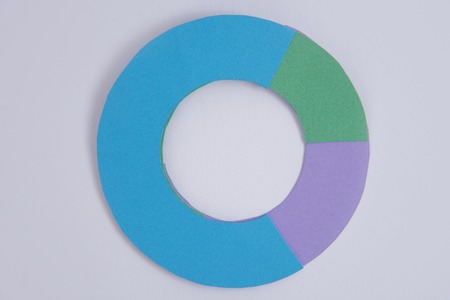 A colorful paper pie chart showcases pastel hues on a minimalist background, creating an engaging visual representation of data and creativity.