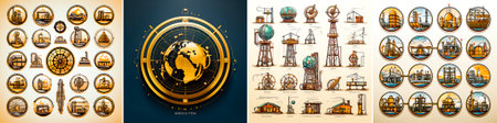 Collage of 4 photos. Brent oil icon series in a simple and modern style. Designed with Neurocore aesthetics for an elegant look. Perfect for use in presentations.reports.or branding materials.