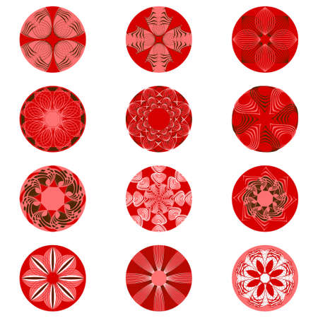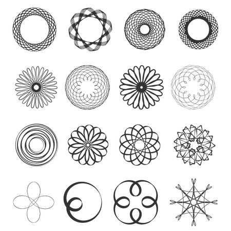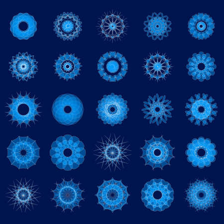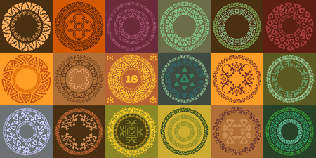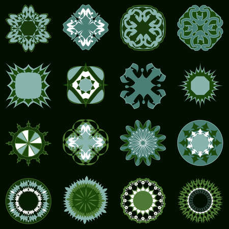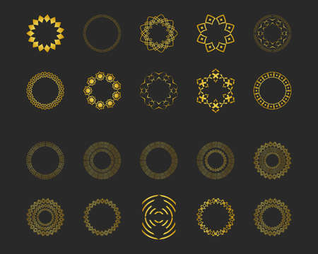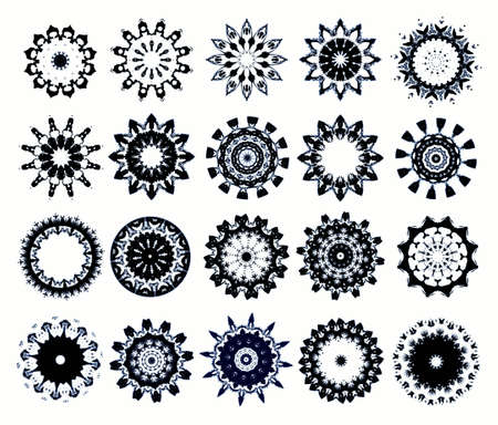 Vector illustration group of circle ornament black and white ornamental pattern round