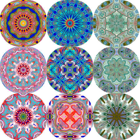 Set of Colorful Decorative Mandala. Vintage decorative elements. Hand drawn background. Islam, Arabic, Indian, Ottoman motifs.
