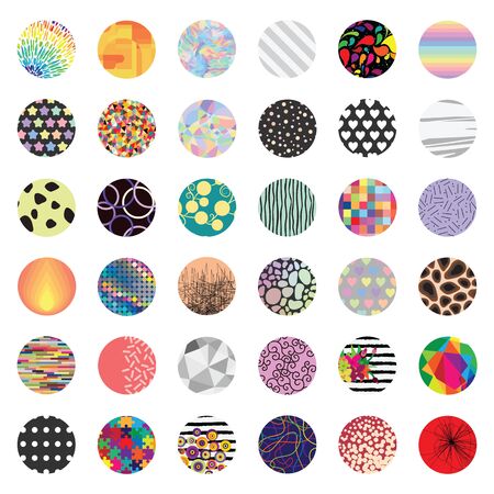 A vibrant assortment of circular patterns featuring diverse textures and colors arranged neatly on a clean white background, perfect for artistic projects.