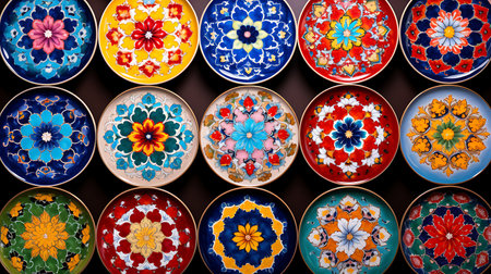 Colorful ceramic plates for sale in a market, Istanbul, Turkey