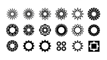 Set of black and white sacred geometry symbols. Geometric circular, circle and circle design elements