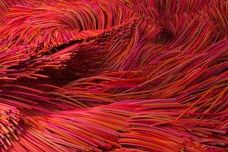 3D rendering of a colorful abstract background of strings, lines, ribbons, fibers or wires. Interweaving of bright strings in space. Lines form structural fibers