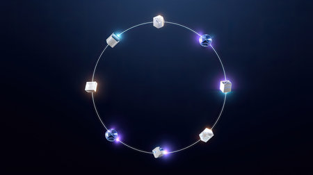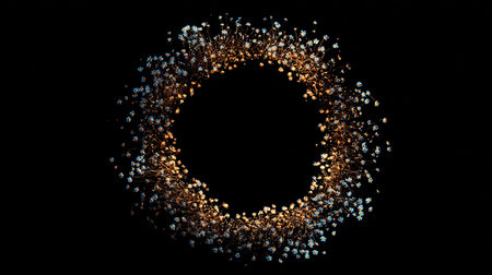 Explore a stunning abstract digital artwork featuring a circular arrangement of luminous geometric shapes. This captivating design shines against a dark background.