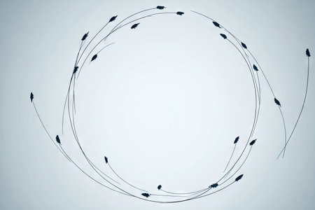 Arrows are organized in a circular arrangement on a smooth surface, creating a visually striking geometric design.