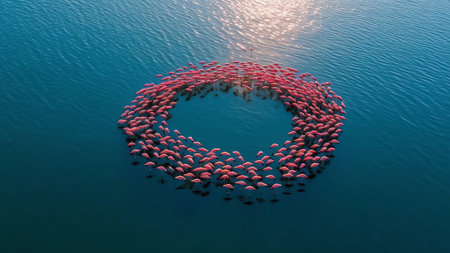 Generative AI : Aerial view of Pink Flamingos at Vendicari Natural Reserve Noto Syracuse Sicily Italy