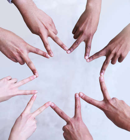 Stars still shine despite bad weather. Shot of a group of unrecognizable businesspeople making a star shape with their hands.